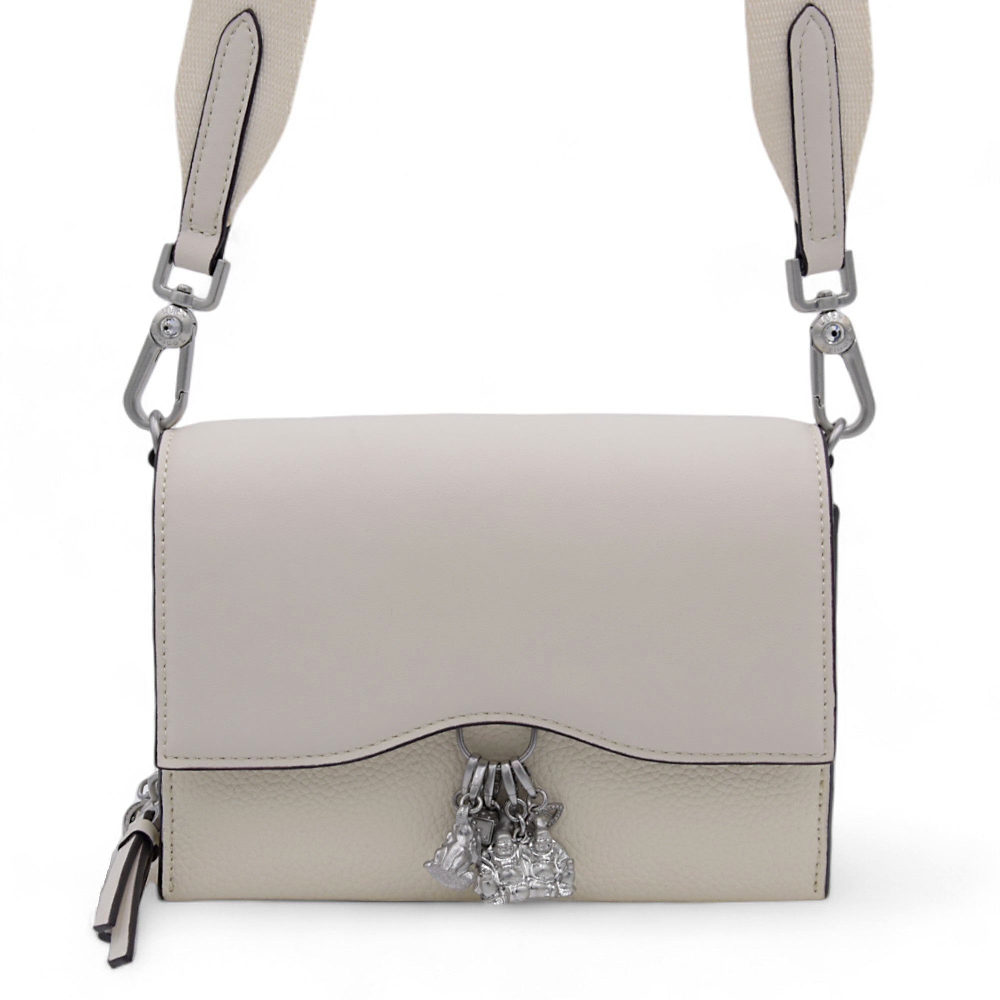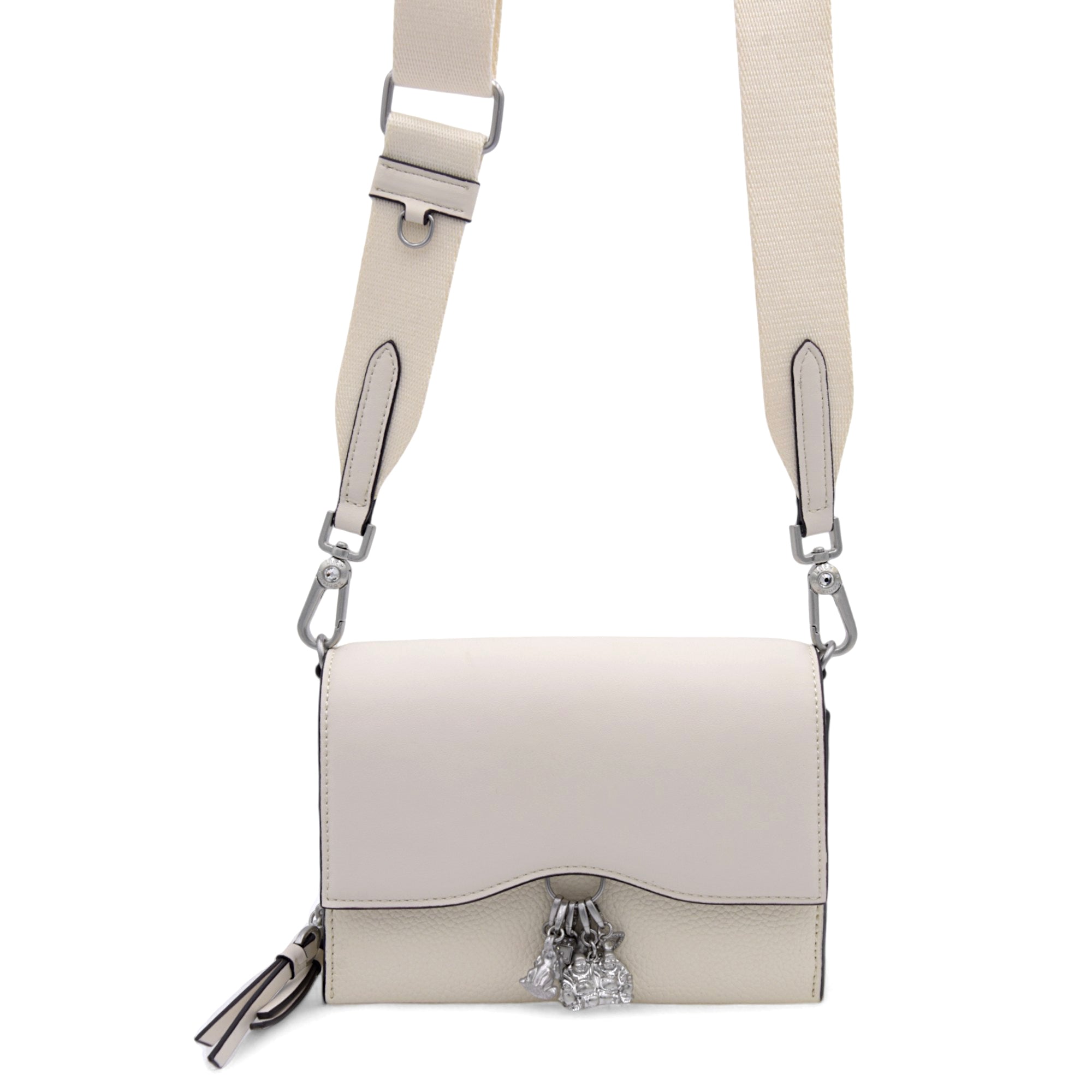 Each Bag comes with our standard 5 interchangeable Lucky Charms [Lucky Elephant, Lucky Dice, Lucky Horseshoe, Double Buddha, Rhinestone Studded Evil Eye]. We hope these will bring you immediate good fortune!