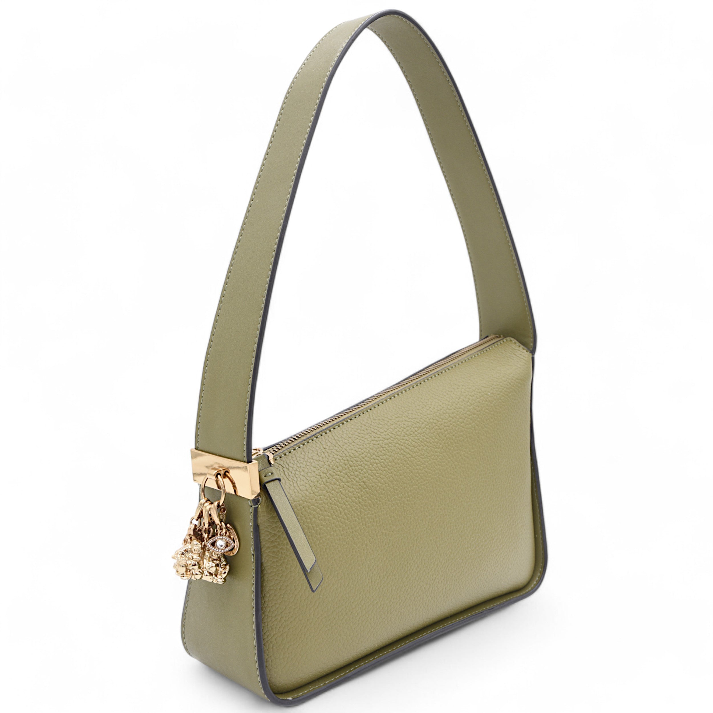 Each Bag comes with our standard 5 interchangeable Lucky Charms [Lucky Elephant, Lucky Dice, Lucky Horseshoe, Double Buddha, Rhinestone Studded Evil Eye]. We hope these will bring you immediate good fortune!